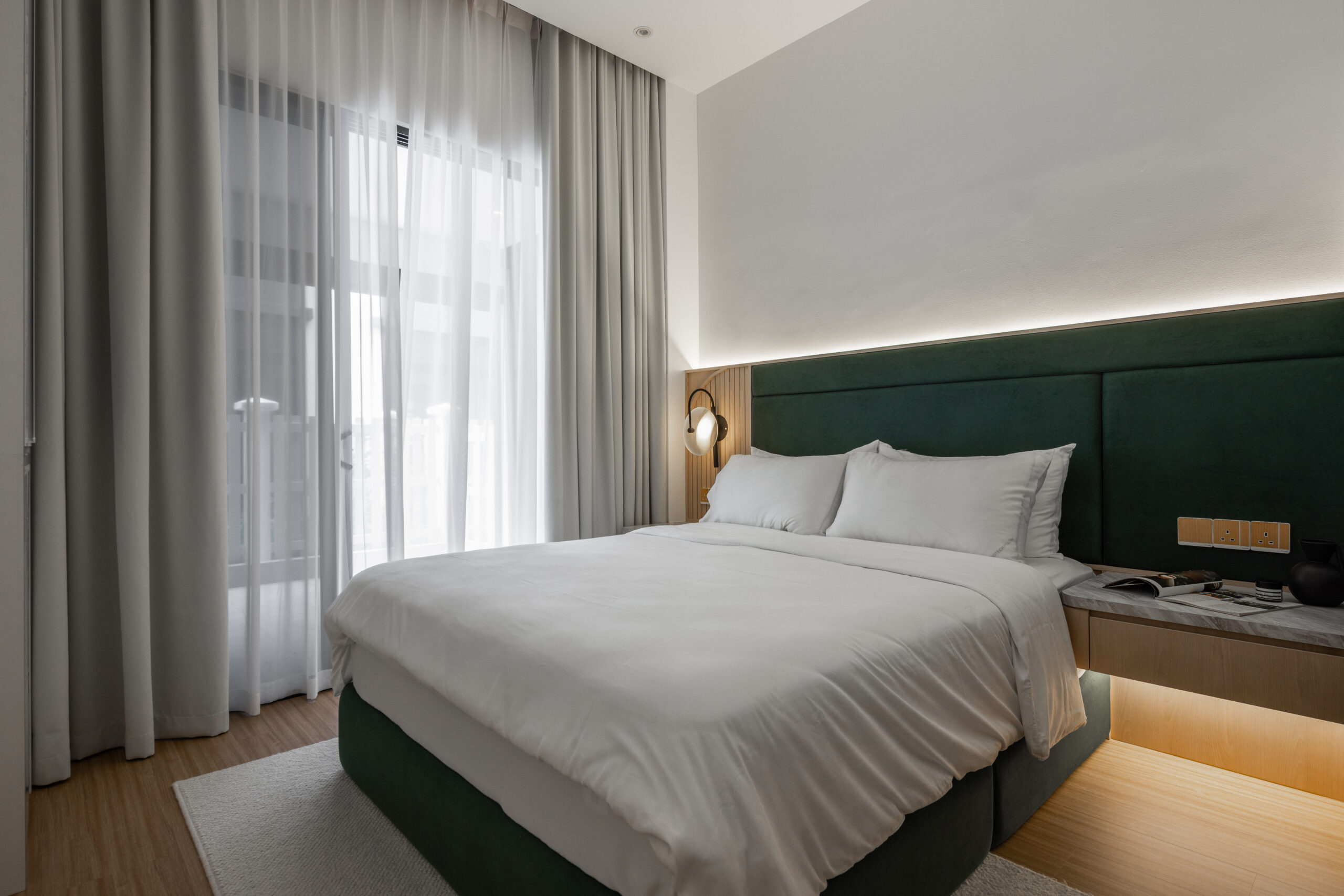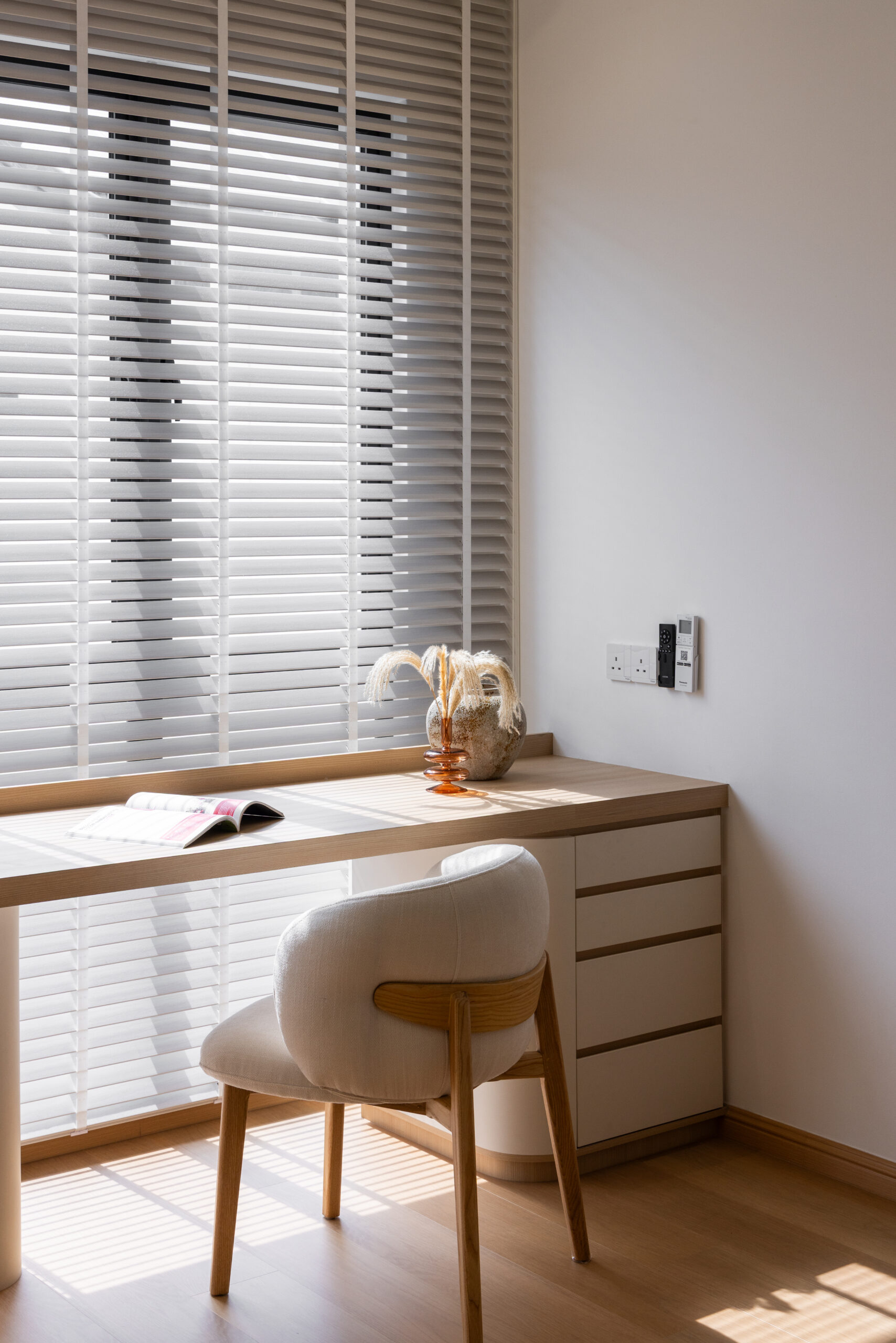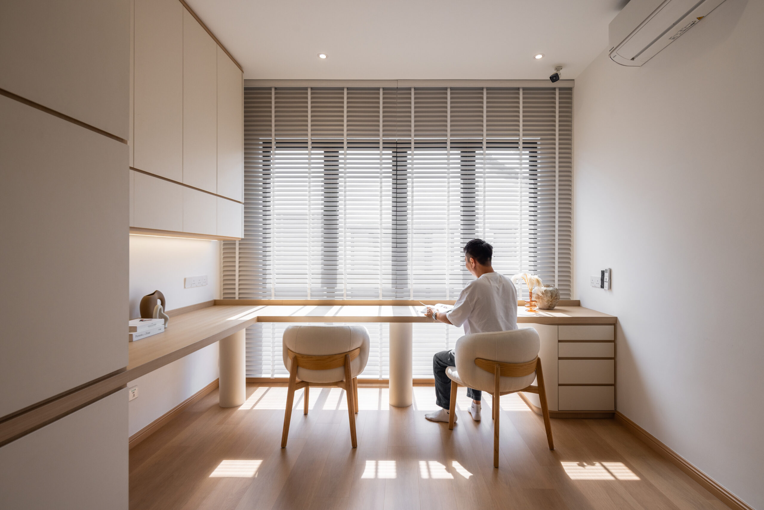 Each bedroom was then crafted with its own unique colour theme, tailored to the personality and needs of its occupant. While maintaining the overall Muji ethos, we introduced gentle variations in tone and texture to give each room its own identity without disrupting the home’s cohesive design language.