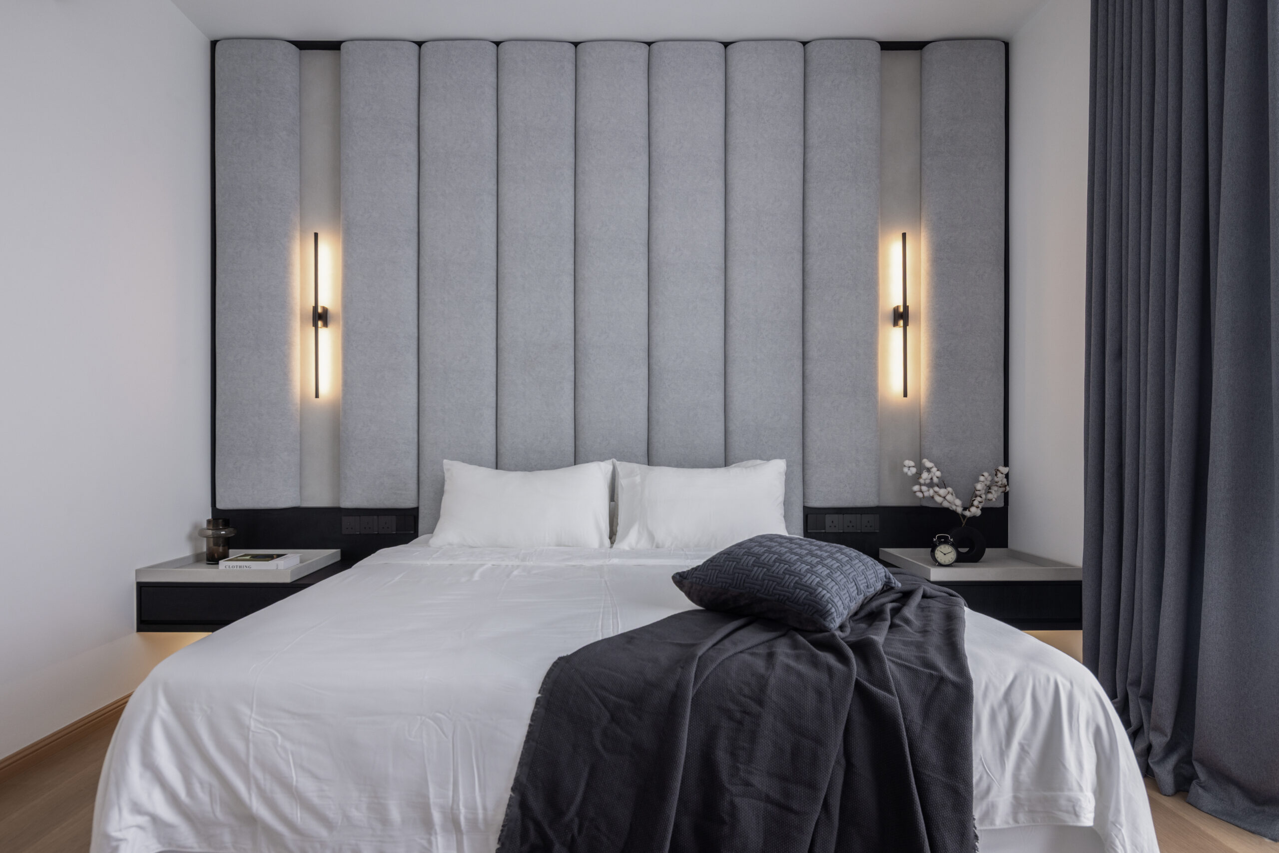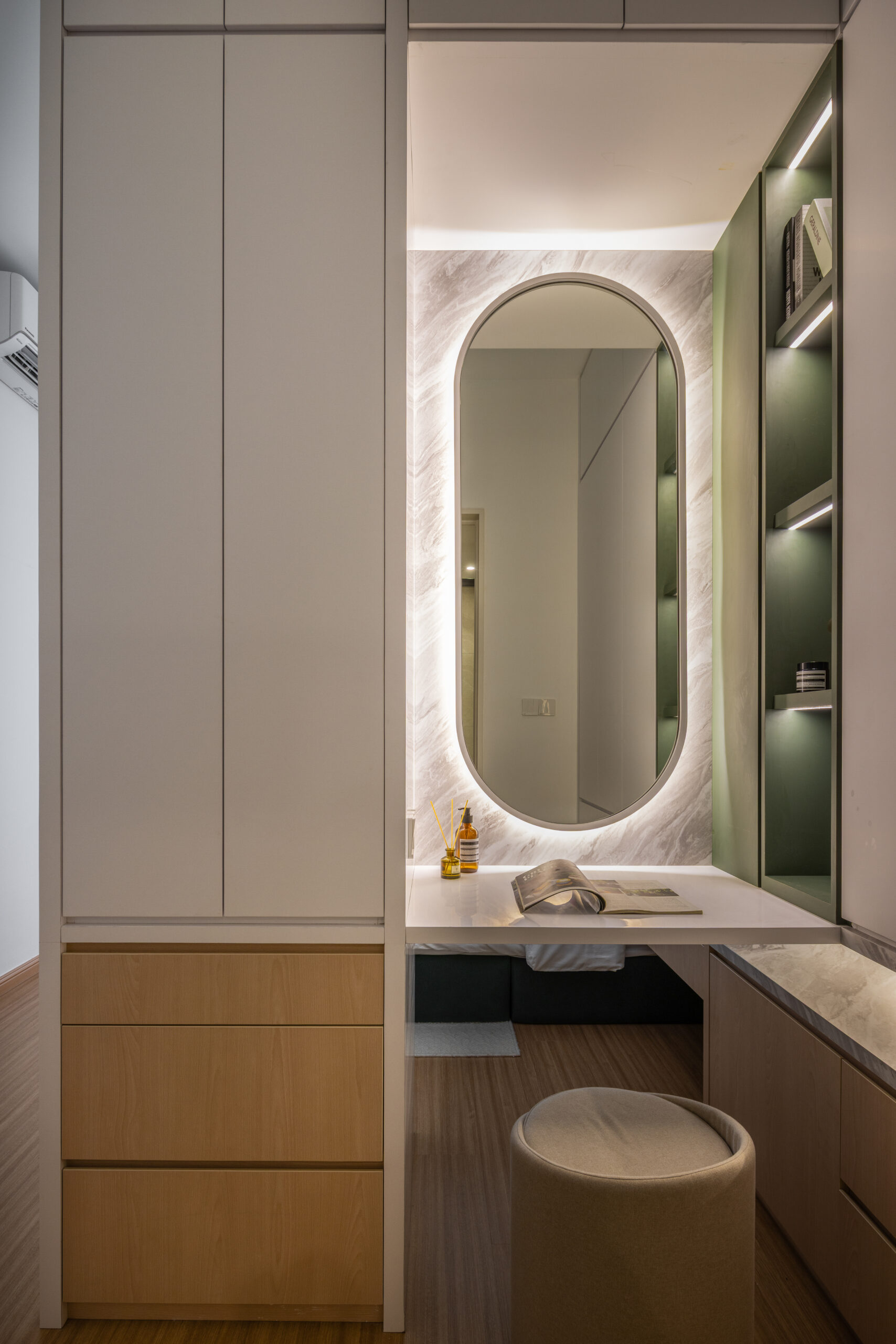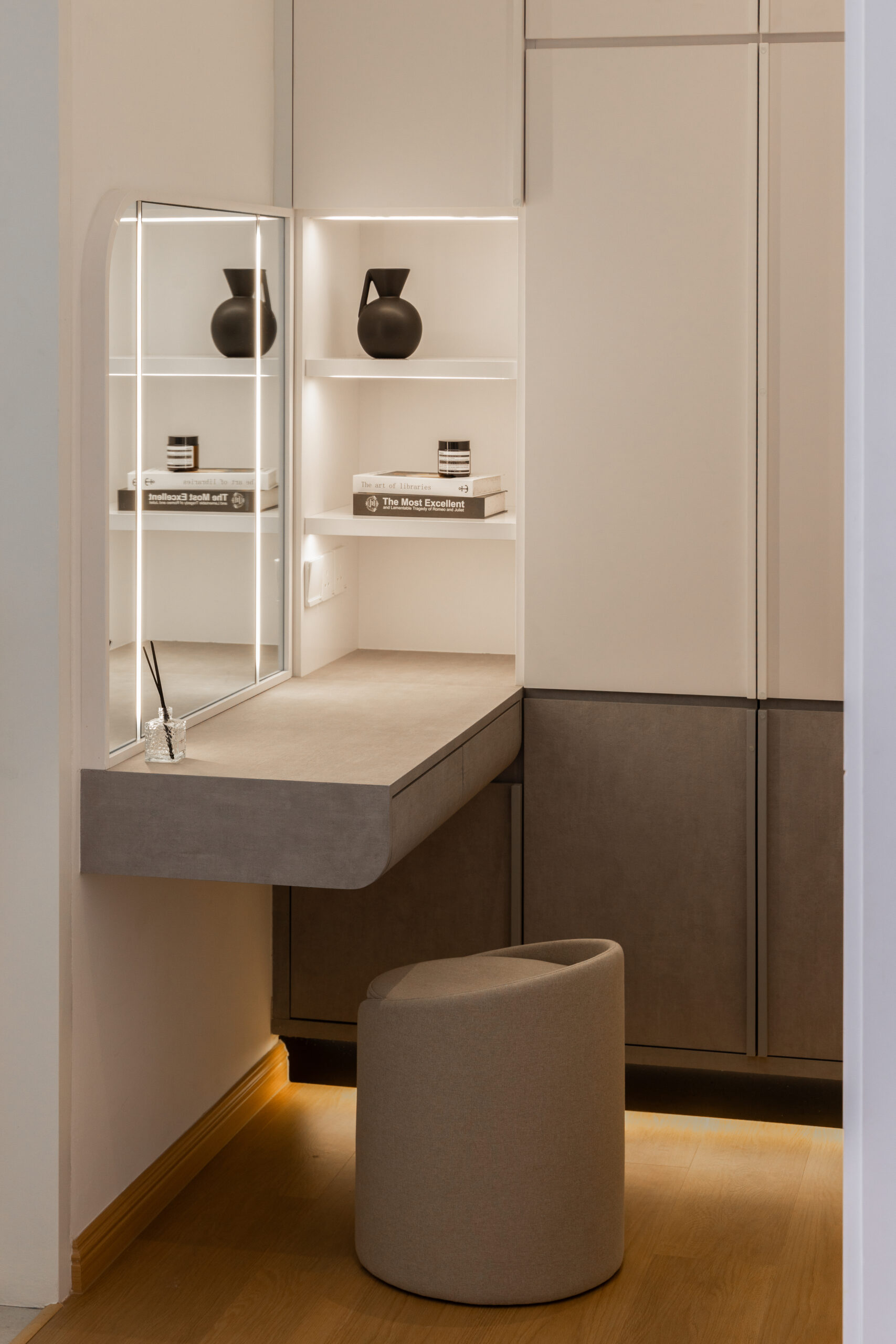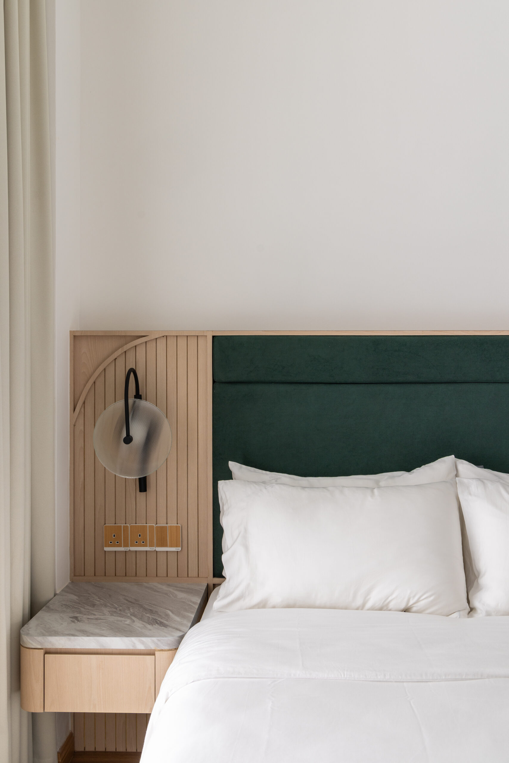 Each bedroom was then crafted with its own unique colour theme, tailored to the personality and needs of its occupant. While maintaining the overall Muji ethos, we introduced gentle variations in tone and texture to give each room its own identity without disrupting the home’s cohesive design language.
